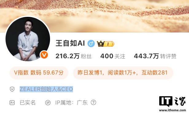 不过,海报中雷鸟创新将王自如描述为“特殊新同事”,尚不知是否会是“首席体验官”类的虚职,目前王自如的微博认证信息仍为“ZEALER创始人&CEO”。