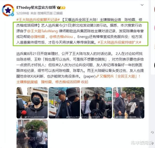 据悉,此次拘捕的“行动源”来自王大陆律师勘验逃兵集团陈姓主嫌对话记录,发现陈嫌自夸曾成功帮助陈柏霖、修杰楷以及张书伟免服兵役,检方深入追查细节之后,这才决定拘提以上三人。